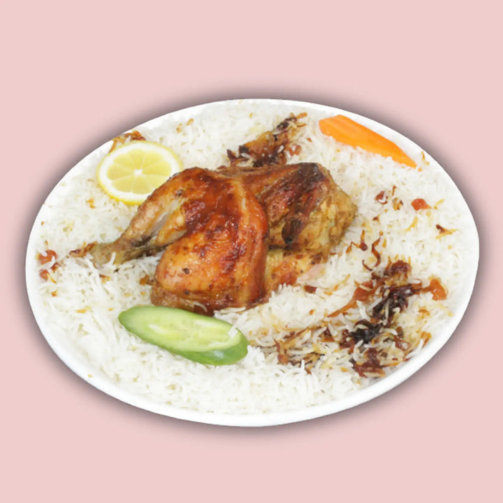 نصف حبة دجاج شوایة مع ارز بشاوري